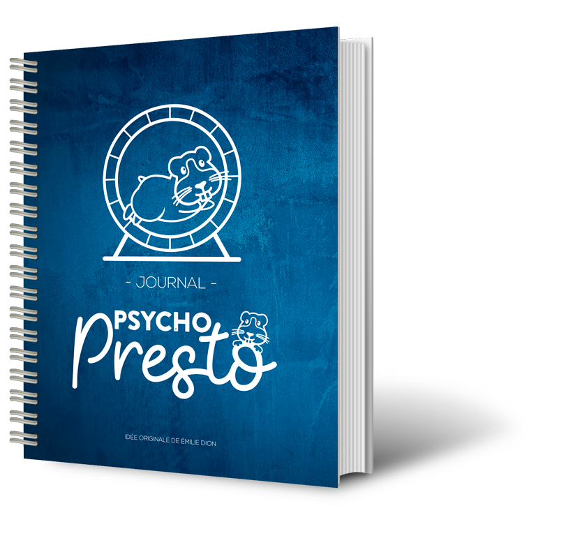 Maintenant, voici ce qu’est le journal Psycho Presto. Il s’agit d’une façon simple d’avoir un portrait global de ta santé mentale ainsi que des trucs pour t’aider à maintenir ou retrouver un équilibre. Il s’agit d’un journal quotidien à remplir le soir avant d’aller dormir. Pourquoi avant le dodo? Parce que cela te permet de couper les écrans et de t’amener dans un état plus méditatif ce qui favorise le sommeil. Ce bilan quotidien permet également de savoir ce qui fonctionne pour toi ou pas dans les différents outils présentés.
